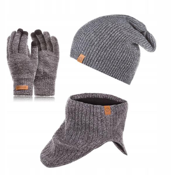 Brødrene Beanie Férfi Sapka Kémény Téli Arany Képernyőkesztyű Szett 3az1ben (103143-LGM)ALLEGRO