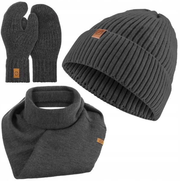 Brødrene Grafit Szett Kémény Sapka Kesztyű Női (P1195-DARKGRAY)ALLEGRO