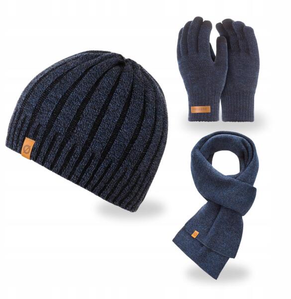Brødrene Téli szett Férfi sapka Sál Kesztyű Sötétkék Brodrene Univerzális (Klasyczny Zestaw Męski na Jesień i Zimę)ALLEGRO