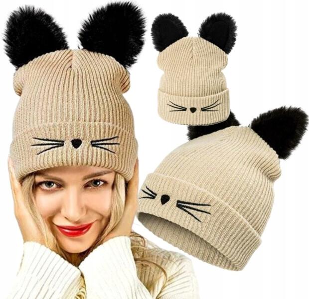 EdiBazzar Bézs Téli Őszi Sapka macska cica fülek cuki meleg divatos női (5905884060490)ALLEGRO