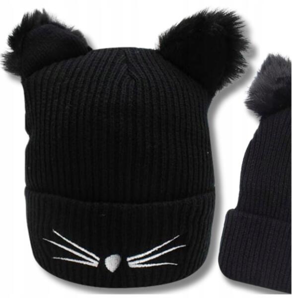 EdiBazzar Fekete téli sapka őszi cica macska fülekkel, cuki, meleg, divatos női (5905884078990)ALLEGRO
