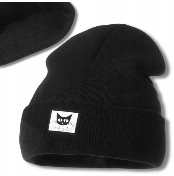 EdiBazzar Meleg téli-őszi sapka macskával, női, tini, uniszex, fekete (5905884028155)ALLEGRO