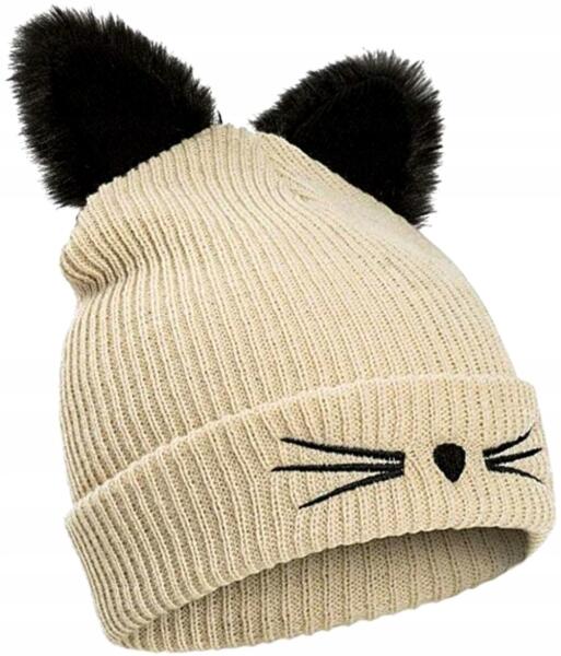 EdiBazzar Téli őszi sapka macska cica fülekkel, meleg, divatos női bézs (5905884078983)ALLEGRO