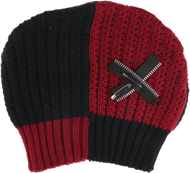 Stílusos, kissé rugalmas kötött sapka, a HEARTLESS-től. Összetétel: 100% poliakril. Magasság kb . : 22 cm. Kb. fej körül: 51cm-től 61cm-ig. Szín: fekete, piros.
