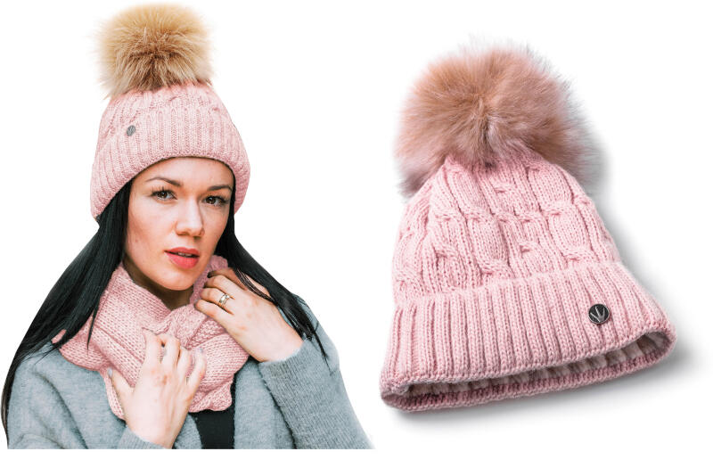 Heyo Meleg Női Téli Sapka Felhajtható Szélű Pomponnal, Polár Béléssel Lengyel Gyártmány (H18527)