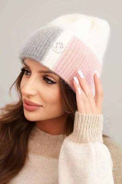 Kesi Színes viszkóz női sapka dekoratív ekrü gombbal szürke (5907302147356)ALLEGRO
