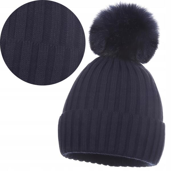 Majka Női Őszi-téli Sapka Meleg Pomponnal, SötétkékALLEGRO