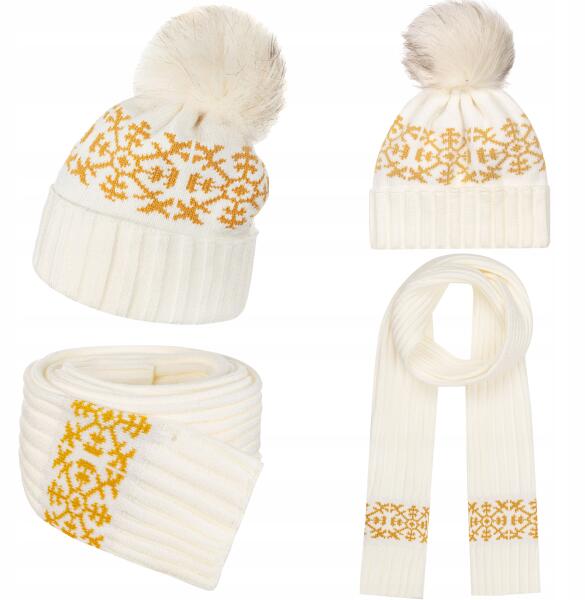 Majka Női Szett Téli Őszi Sál Sapka Hópehely Ekrü Sárga (K14+SZ8-276-KPL)ALLEGRO