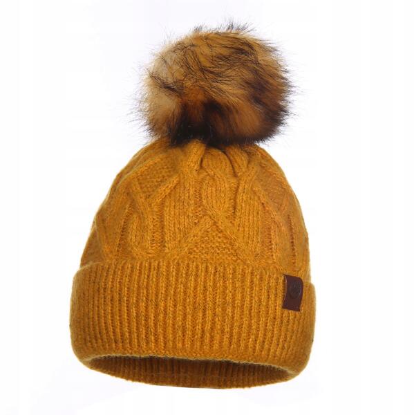 Majka Női Téli Bélelt Sapka Kötött Pomponnal Télire Sárga MajkaALLEGRO