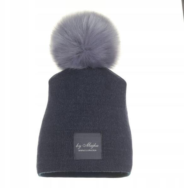 Majka Női Téli Bélelt Sapka Pomponos Felvarróval Majka Kék FarmerALLEGRO