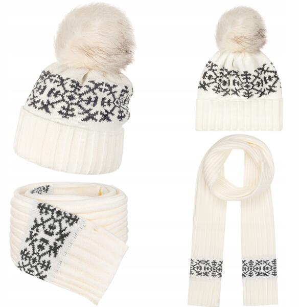 Majka Női Téli Őszi Sál Sapka Hópehely Ekrü Grafit (K14+SZ8-274-KPL)ALLEGRO