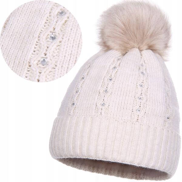 Majka Női Téli Sapka Bélelt Pompon Díszítő Strasszokkal BézsALLEGRO