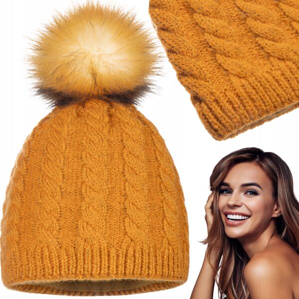 Majka Női Téli Sapka Női Beanie Őszi Téli Majka MézsárgaALLEGRO