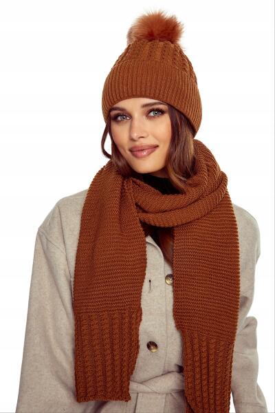 Majka Női téli szett Női Sapka Pomponos Kendő 1, 8 m Barna (D30-152-UNI)ALLEGRO