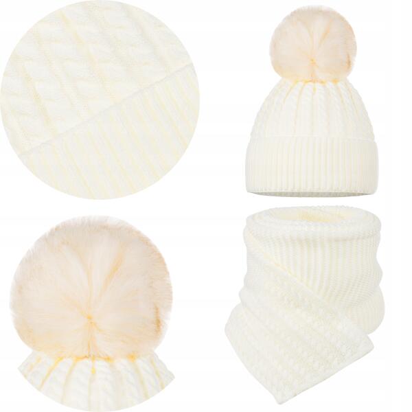 Majka Női téli szett Pomponos Sapka Kendő 1, 8 m Bézs Ecru (D30-141-UNI)ALLEGRO