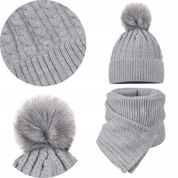 Majka Női téli szett Pomponos Sapka Kendő 1, 8 m Szürke (D30-212-UNI)ALLEGRO
