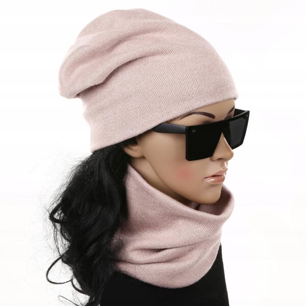 Majka Rózsaszín Női Téli Sapka Szett Dupla Varrású ViszkózALLEGRO