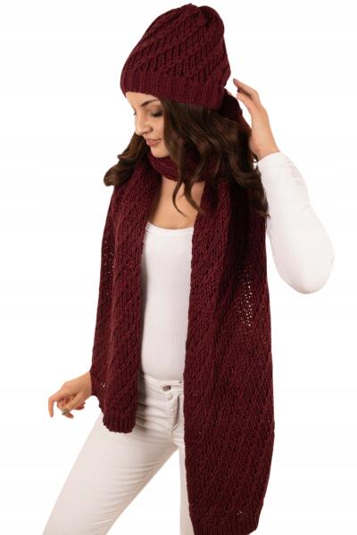 Majka Sál Sapka Beanie Női Szett 10% Gyapjú Bordó (D35-117-UNI)ALLEGRO