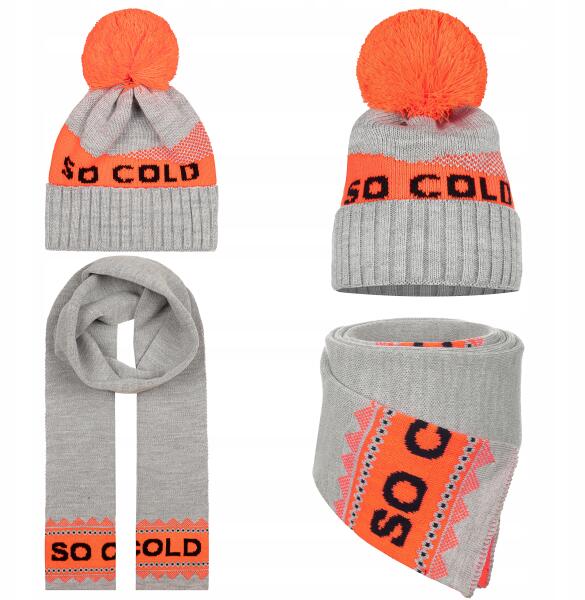 Majka Sál Sapka Szett Női Téli Női So Cold Szürke Narancssárga (K4)ALLEGRO