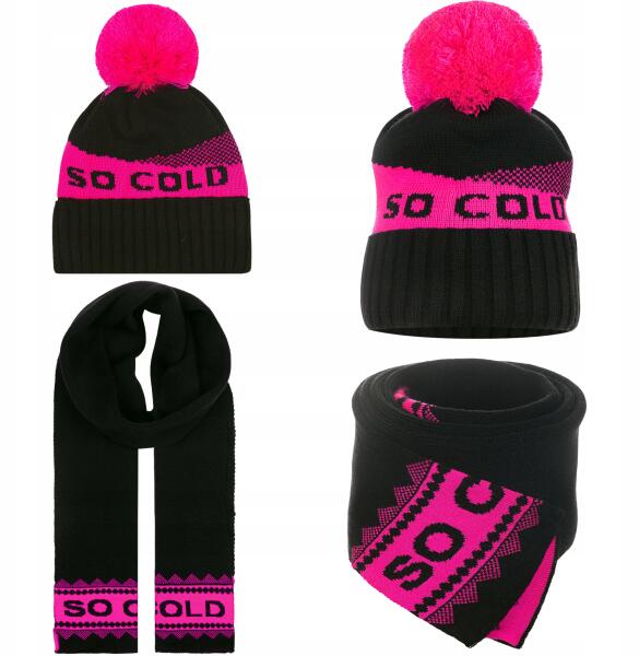 Majka Sál Sapka Szett Női Téli Őszi Női So Cold Fekete Rózsaszín (K4-267-UNI)ALLEGRO