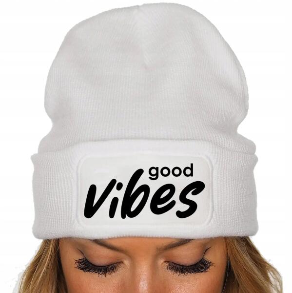 Női Téli Sapka Fehér Őszi Tél Vicces Divatos Nyomtatás Good Vibes (Czapka Zimowa Good Vibes Biała)