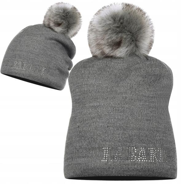 Pomponos Sapka Téli Pompon Labartti Dekoratív Felirat Szürke (LV-5 CIEMNY SZARY)